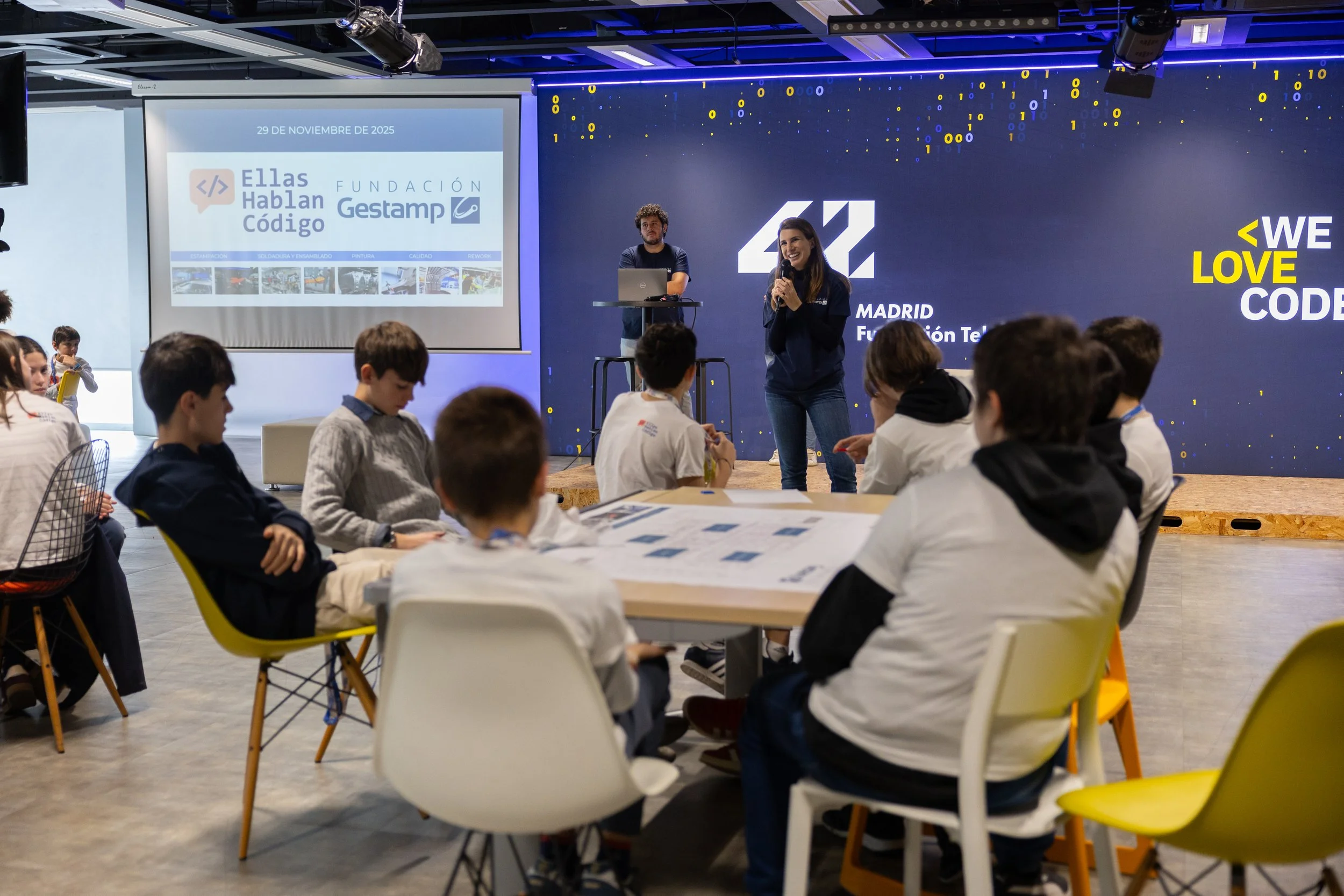 Cada participante construye algo tangible: historias, juegos, animaciones o pequeños prototipos.